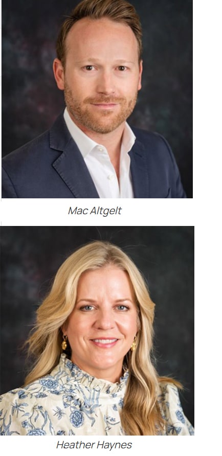 San Antonio-based Sanger & Altgelt LLC Insurance Agency, a locally and generationally owned family business serving primarily San Antonio and surrounding communities, announced the promotion of Mac Altgelt to the position of chief executive officer and Heather Haynes to serve as president. Longtime employees of the firm, Altgelt and Haynes both previously served as vice presidents and assumed their new offices at the start of this year.